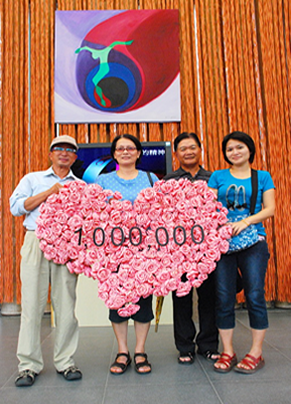 | 100万人目おめでとう。高雄の三民区から来られた羅さん(張おくさん)―左から二人目。 |