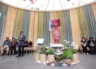 中央に置かれているのが彫刻「平安娃」(無事帰る) |