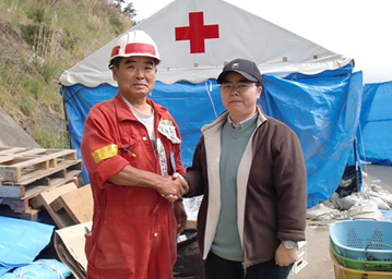 東京から来た志津川出身の女性ボランティアさん。実家は流されたが、父母と兄家族の7人全員助かった。