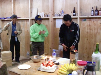 ろうそくに火を灯し、私たちも含め皆でハッピィバースディの歌、はにかむ佐々木さん。