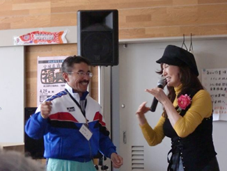 | 山本リンダと踊る避難所住民リーダー山ちゃん |